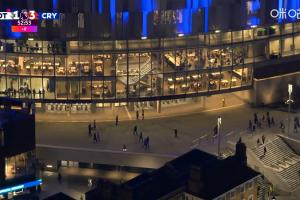 下半场开始前,转播镜头的俯视角拍摄热刺球场坐席↓