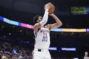 上半场,迎来复出的雷霆球员阿杰伊·米切尔表现出色,首节就拿到10分,替补出战16分钟,投篮12中7,三分球4中1,罚球1中1,拿到16分1篮板2助攻1抢断的数据,正负值+12。