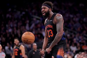 上半场比赛,尼克斯中锋米切尔·罗宾逊进攻端能吃饼,防守端能拼抢,尤其篮板保护十分不错,他替补出战10分钟,3中3,罚球2中1拿到7分6篮板(2前场篮板)1助攻1盖帽,正负值+6。
