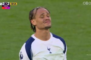 体育资讯04月19日讯 热刺vs布莱顿,鲁特尔破门,布莱顿第94分钟绝平热刺!镜头随即给到西蒙斯,这场世界波+助攻的他非常痛苦!