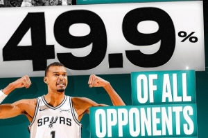 维克托·文班亚马短暂的职业生涯至今,他已经和547名对手同场竞技过,而其中有273 人(占比49.9%)都有被他至少封盖过一次。